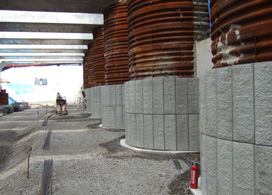 ホーム > コンポジット残存型枠工法 > 鋼構造の被覆修景工(鋼矢板・鋼管杭・親杭横矢板・深礎杭)